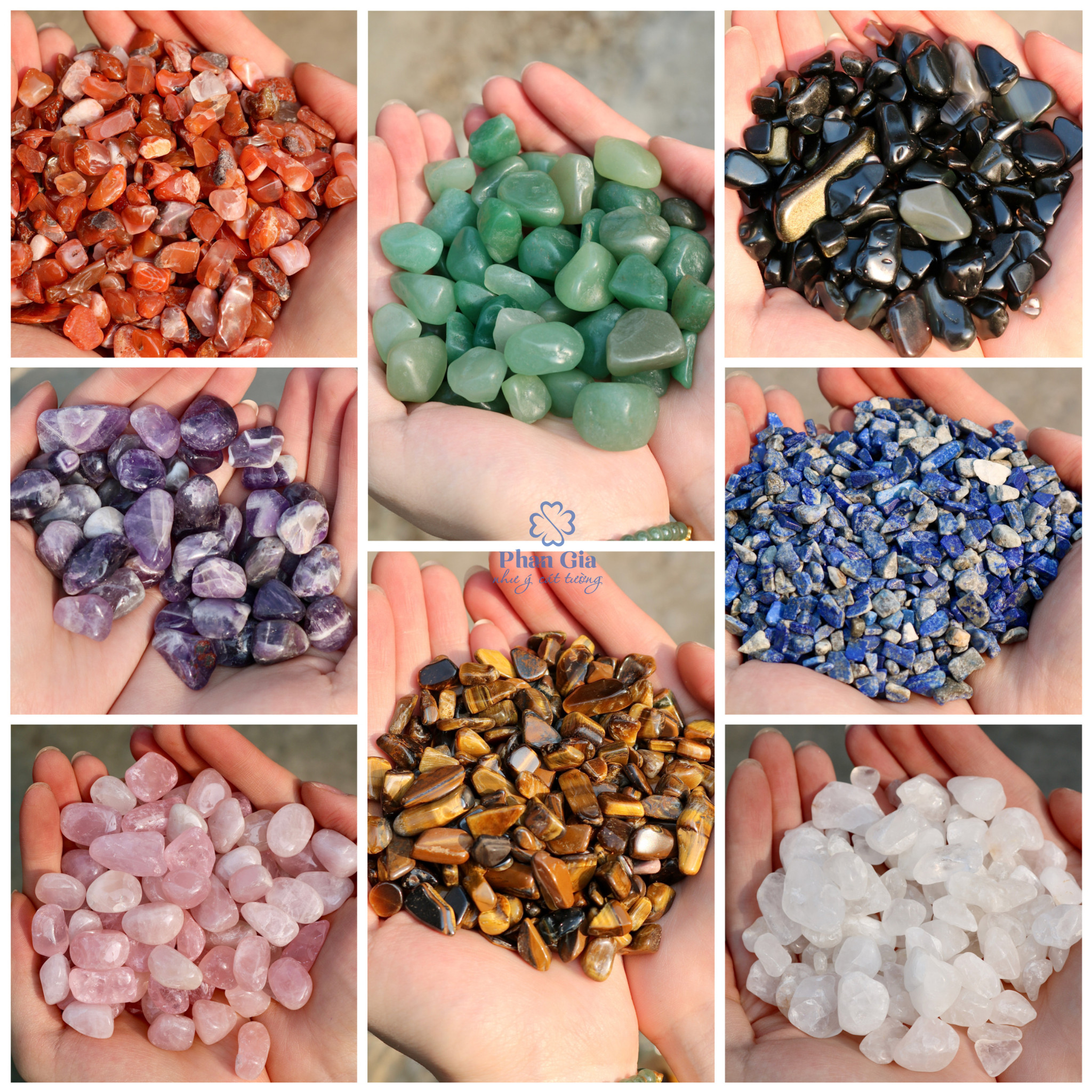 Phong Thủy Phan Gia trong rất nhiều năm qua luôn là địa chỉ uy tín cung cấp thạch anh đúng chuẩn tự nhiên, không pha tạp, không nhuộm màu,thạch anh chuẩn chất lượng. Chúng tôi có đa dạng nhiều loại thạch anh: Thạch anh đã chế tác thành các vật phẩm (trang sức, quả cầu, linh vật,..), thạch anh thô, thạch anh vụn mài bóng, thạch anh ngũ sắc,….