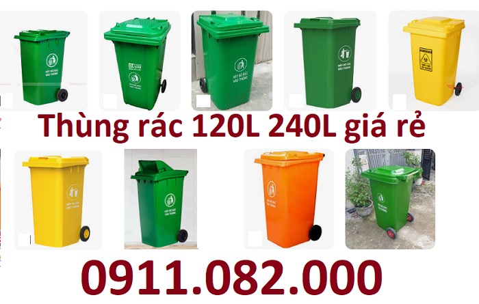 Bộ đôi thùng rác 120l và 240 lít giá rẻ- thùng rác môi trường giá sỉ- lh 0911082000