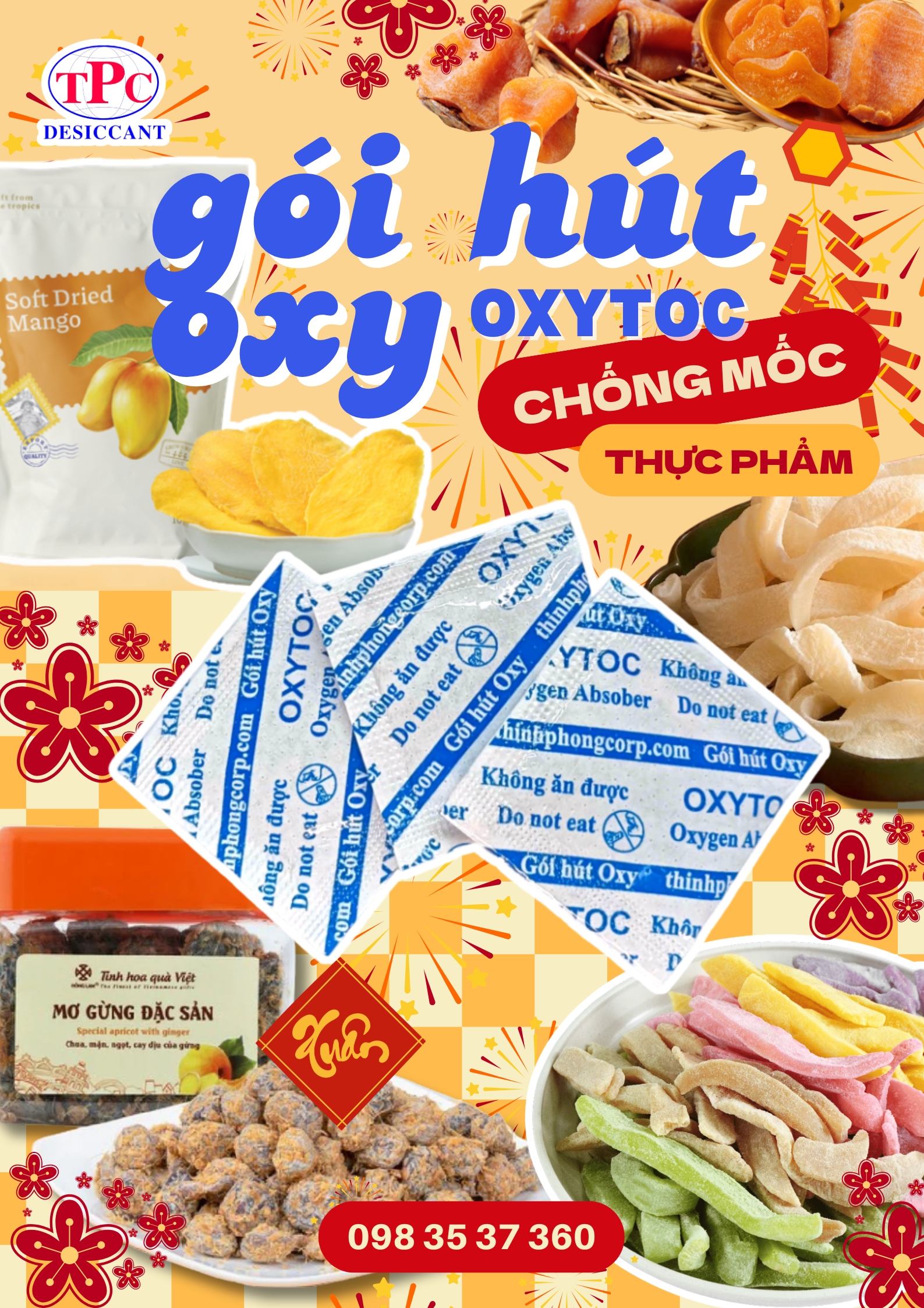 Trong quá trình lưu kho và vận chuyển, mứt dừa và bánh kẹo Tết thường gặp tình trạng mốc trắng, mềm ướt hoặc giảm hương vị. Dù đã đóng gói kỹ, nhưng nếu không xử lý lượng oxy dư trong bao bì, sản phẩm vẫn nhanh xuống chất lượng. Đây chính là lý do gói hút oxy OXYTOC ngày càng được nhiều cơ sở sản xuất và đóng gói quà Tết lựa chọn.
