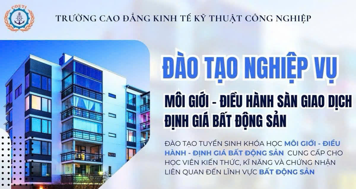 KHAI GIẢNG KHÓA HỌC NGHIỆP VỤ MÔI GIỚI BẤT ĐỘNG SẢN Thời gian học: 19h30 - 21h30 thứ 2, 4, 6 hàng tuần - Hình thức học: Học trực tuyến - Đối tượng tham gia: Các công ty, cá nhân trên toàn quốc có nhu cầu - Học phí 2.500.000/3 khoá: MÔI GIỚI; ĐỊNH GIÁ VÀ ĐIỀU HÀNH SÀN GIAO DỊCH BĐS 💁🏻 Hồ sơ gồm: - Đơn đăng ký (theo mẫu) - 3 ảnh 3x4 - 2 CCCD photo - Sơ yếu lý lịch - Bằng tốt nghiệp cao nhất công chứng (Bằng từ tiểu học trở lên) 💥 Ưu đãi giảm học phí khi đăng ký nhóm 🎓 Cấp chứng nhận Môi giới, định giá và Quản lý sàn giao dịch bđs *** Hỏi - Đáp trực tiếp tất cả những vấn đề liên quan đến BĐS sau mỗi buổi học 📍Địa điểm: Trường Cao đẳng Kinh tế Kỹ thuật Công nghiệp - Hà Nội, Hải Phòng, Quảng Ninh, Đà Nẵng, Nha Trang, TP. Hồ Chí Minh ☎️: 0982 787 881 - cô Linh