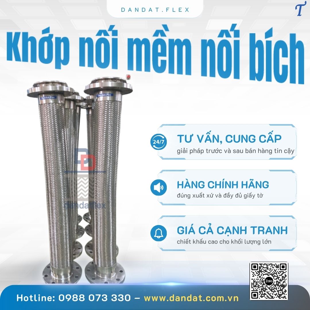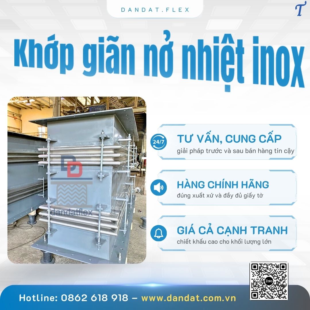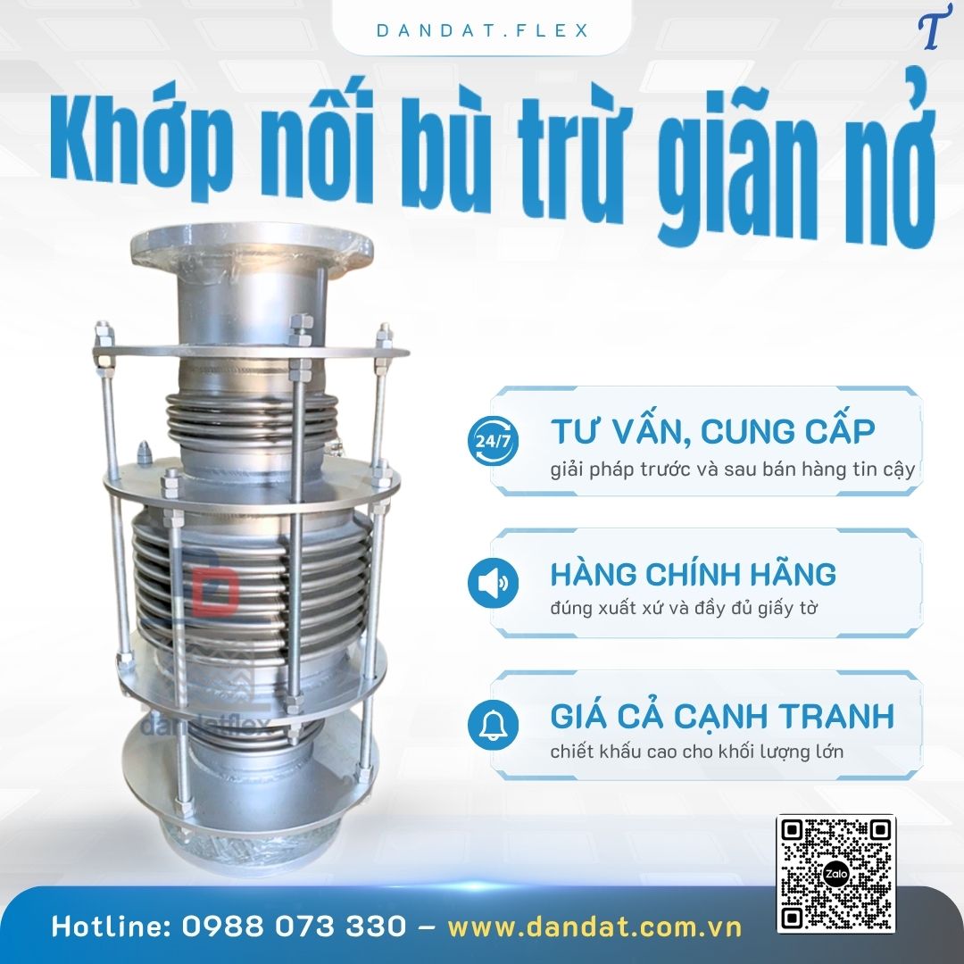 1. Khớp nối giãn nở nhiệt inox là gì? Là thiết bị cơ khí được làm từ inox 304, 316 hoặc 321, khớp giãn nở có dạng sóng đàn hồi giúp hấp thụ biến dạng do giãn nở nhiệt, rung động hoặc dịch chuyển cơ học của hệ thống ống.Tên gọi khác của sản phẩm gồm: • Khớp nối giãn nở mặt bích • Ống bù trừ giãn nở nhiệt inox • Bù trừ áo không mặt bích • Khớp co giãn inox chịu nhiệt • Khớp nối đường ống công nghiệp 2. Ưu điểm vượt trội: • Hấp thụ co giãn nhiệt dọc/trục/ngang • Chịu áp lực cao, bền bỉ trong môi trường khắc nghiệp • Tăng tuổi thọ, giảm hư hại cho hệ thống • Dễ thi công, bảo trì – kết nối linh hoạt: hàn, ren, mặt bích 3. Ứng dụng phổ biến: • Nhà máy điện, dầu khí, xi măng, thực phẩm • Hệ thống HVAC, PCCC, hơi nóng – lạnh công nghiệp • Các tuyến ống dài dễ co giãn nhiệt Dân Đạt – Đối tác tin cậy cung cấp khớp nối bù giãn nở/ khớp nối giãn nở nhiệt inox/ khớp nối giãn nở toàn thân inox/khớp nối đường ống công nghiệp/ bù trừ inox/ bù trừ áo chất lượng cao, sản xuất theo yêu cầu, tư vấn kỹ thuật và hỗ trợ vận chuyển tận nơi