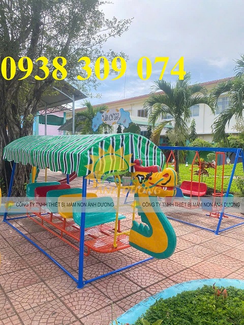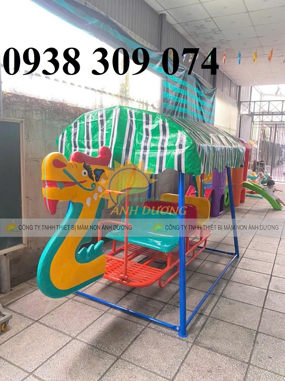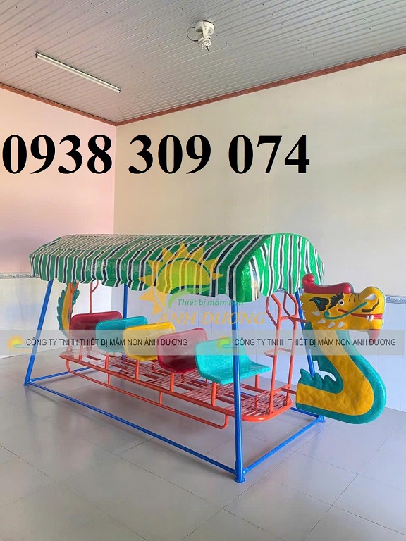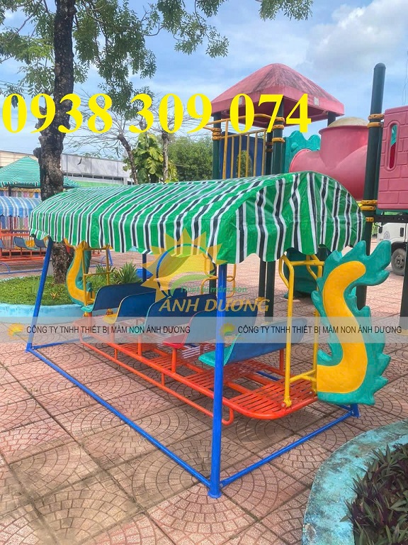 XÍCH ĐU THUYỀN RỒNG CÓ MÁI CHE Xích đu thuyền rồng là bộ xích đu mầm non chất lượng cho sân chơi ngoài trời cho trẻ mầm non. Được thiết kế theo hình con rồng độc đáo, hướng đến các trẻ từ 2 tuổi trở lên. Mẫu xích đu thuyền rồng mầm non có thiết kế hiện đại và màu sắc nổi bậc không gian của sân chơi trẻ em. Ghế ngồi của xích đu được làm bằng vật liệu composite nên rất vững chắc và chịu được thời tiết mưa nắng. Ứng dụng: Thích hợp sử dụng tại trường mầm non, công viên hoặc sân chơi gia đình. CÔNG TY THIẾT BỊ MẦM NON ÁNH DƯƠNG 54/19 Bùi Quang Là, Phường 12, Gò Vấp, Tp. Hồ Chí Minh 5/5 Tô Ký, ấp mới 2, Trung Chánh, Hóc Môn, TP.HCM HOTLINE: 0938 309 074